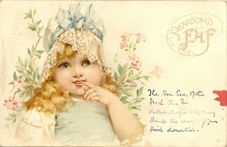 u/b, DESIGNED IN ENGLAND, CHROMOGRAPHED IN SAXONY, listed in 1904 POSTCARD Catalogue, same image, French back 15, comes with advert PEARSON'S F.A.F. on front