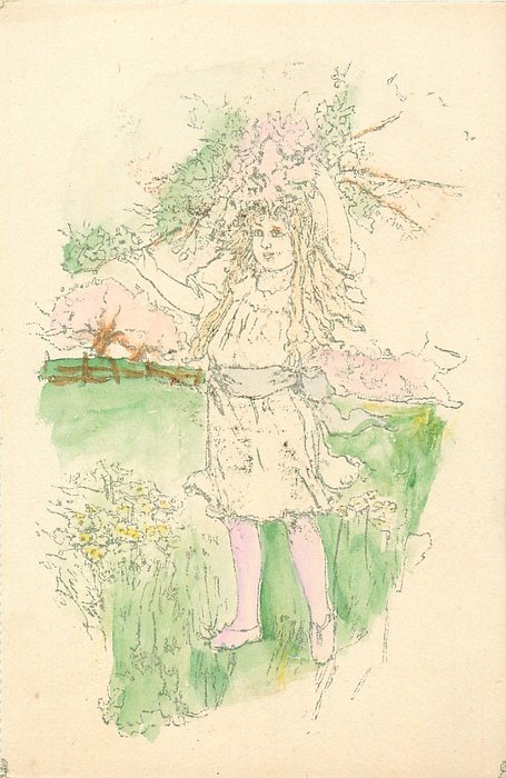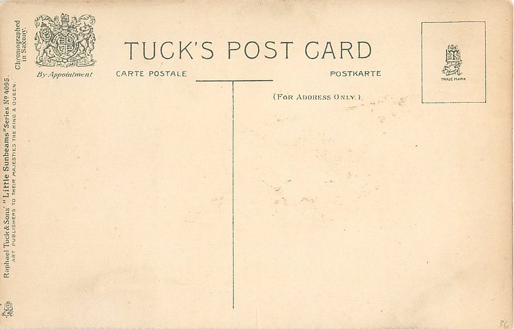 CHROMOGRAPHED IN SAXONY, perforated cards from postcard painting book LITTLE SUNBEAMS 4095, see ephemera database, same images come German backed LACHENDE JUGEND 5502