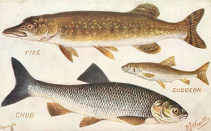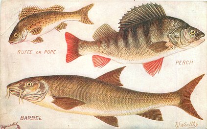 back Tuck logo at base with RAPHAEL TUCK & SONS, LTD. LONDON, PARIS, NEW YORK AND MONTREAL, same images AQUARETTE 9368 BRITISH FRESH WATER FISH & listed in TuckDBephemera