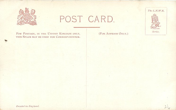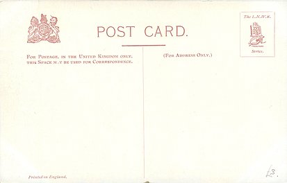coloured THE L.N.W.R. SERIES (in stamp box), PRINTED IN ENGLAND or not for more information & allocation to sets see The Official Railway Postcard Book by John Alsop
