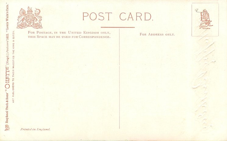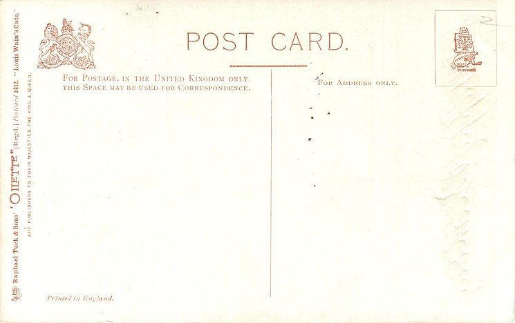 OILETTE, PRINTED IN ENGLAND, 3 backs, see Booth and Lund, listed in 1908/1909 Catalogue