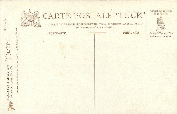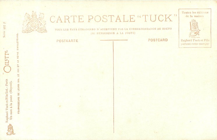 OILETTE, UN MOT A LA POSTE (DEPOSE), suffix P, 4 backs, come with & w/o letter suffixes, same image, English back OILETTE WIDE-WIDE-WORLD 7702