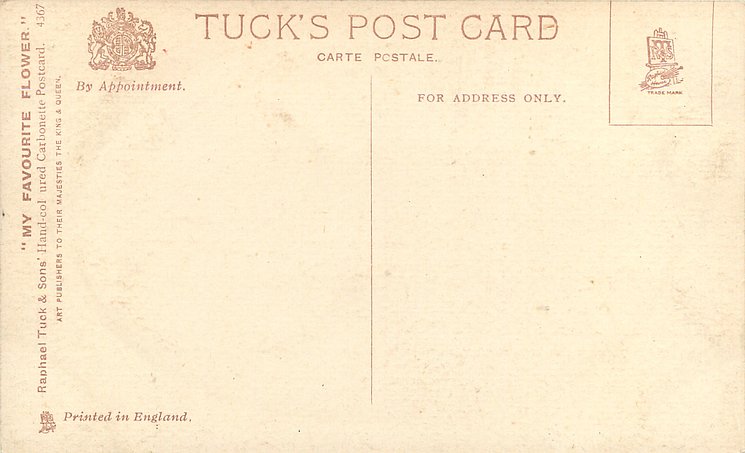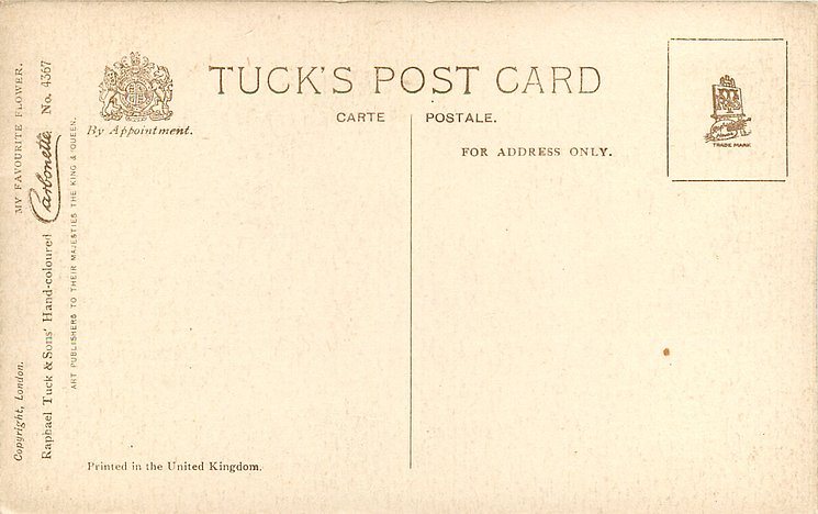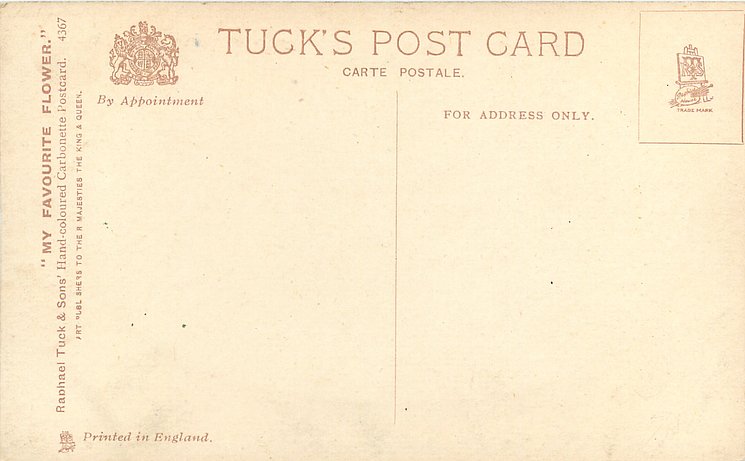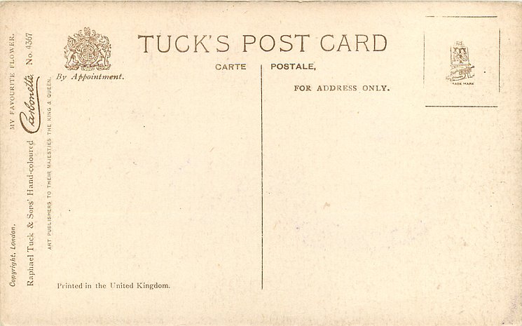 HAND COLOURED CARBONETTE, for same image CARBONETTE see 4624, PRINTED IN ENGLAND or PRINTED IN UNITED KINGDOM