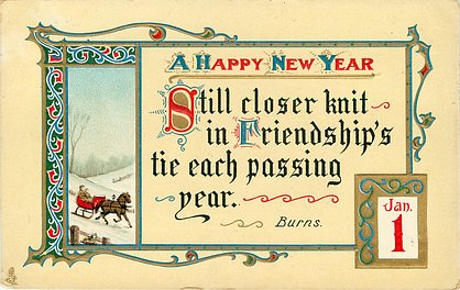 gilt embossed, PROCESSED IN SAXONY, same images FLORENTINE BORDER NEW YEAR 609