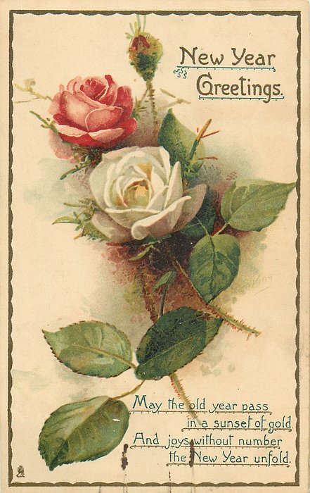 verse:- MAY THE OLD YEAR PASS IN A SUNSET OF GOLD AND JOYS WITHOUT NUMBER THE NEW YEAR UNFOLD.