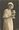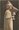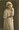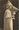 girl in nightgown & cap, poses with candle stick with both hands looking forward