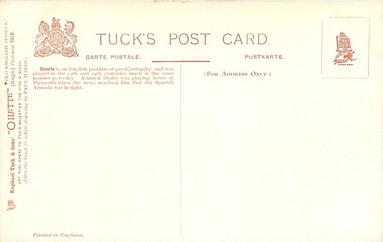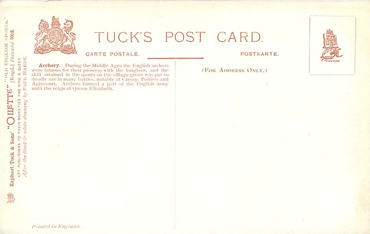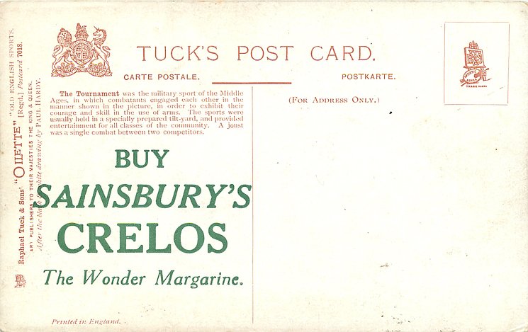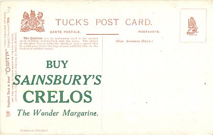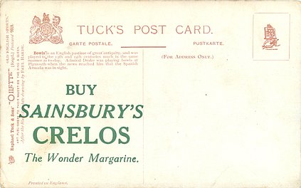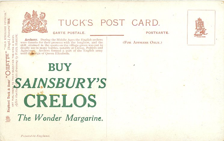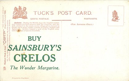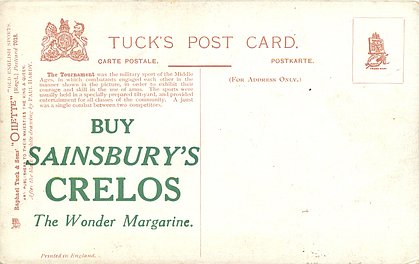 OILETTE, PRINTED IN ENGLAND, a set has BUY SAINBURY'S CRELOS THE WONDER MARGARINE on back, 2 backs, AFTER THE BLACK & WHITE DRAWING BY PAUL HARDY or R. TAYLOR, listed in 1908/1909 &1911/1912 & 1912/1913 &1913/1914 POSTCARD Catalogues