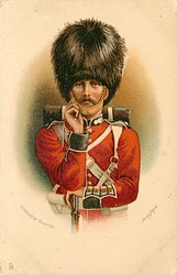 GRENADIER GUARDS guardsman facing front, right arm up to cheek