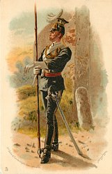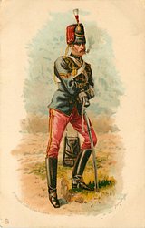 11TH PRINCE ALBERT'S OWN HUSSARS hussar leans on sword, smoking pipe