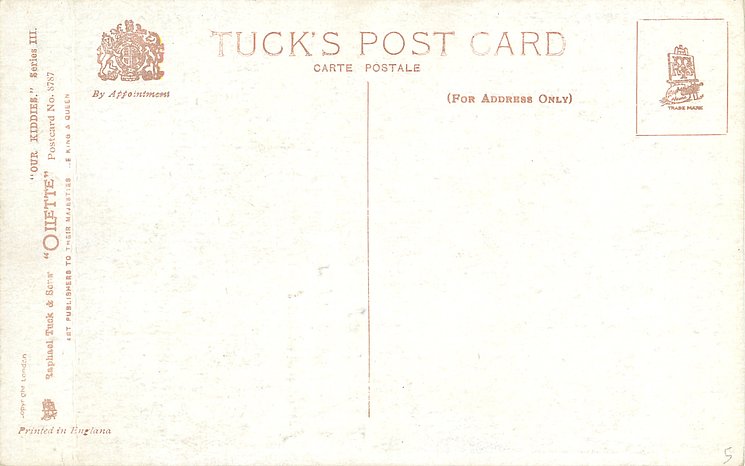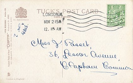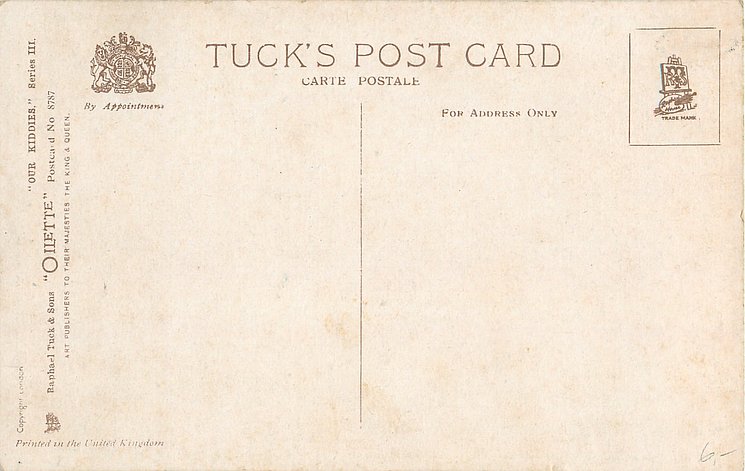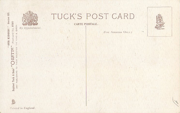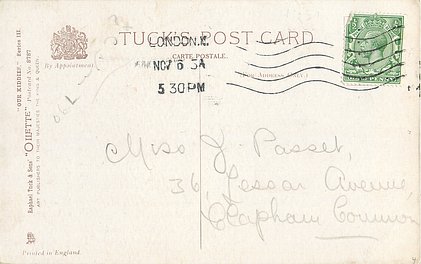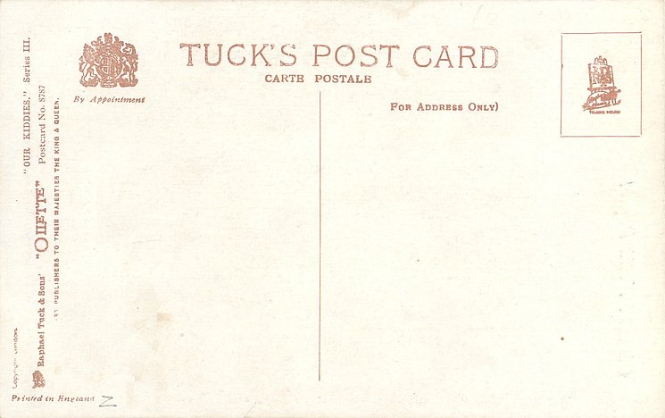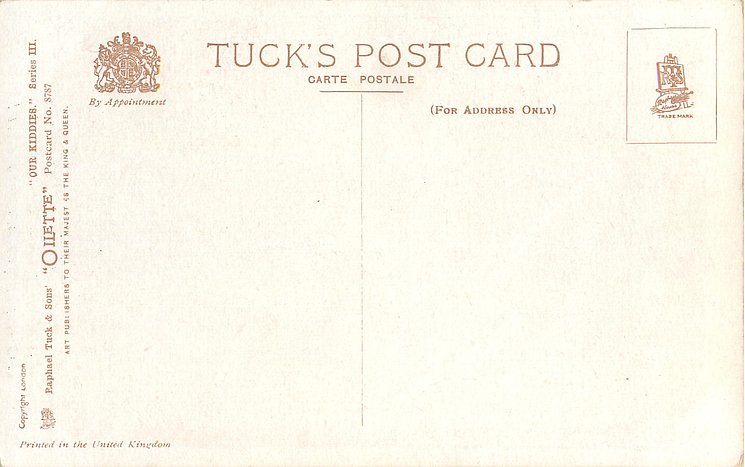 OILETTE, PRINTED IN ENGLAND or PRINTED IN THE UNITED KINGDOM, COPYRIGHT LONDON or not, listed in 1930 POSTCARD Catalogue