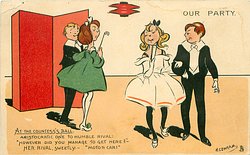 AT THE COUNTESS'S BALL. ARISTOCRATIC ONE TO HUMBLE RIVAL: "HOWEVER DID YOU MANAGE TO GET HERE?"- HER RIVAL, SWEETLY:- "MOTOR CAR!"