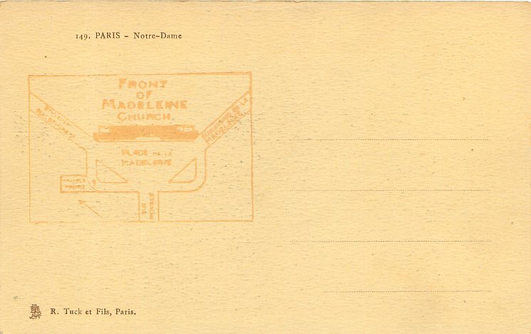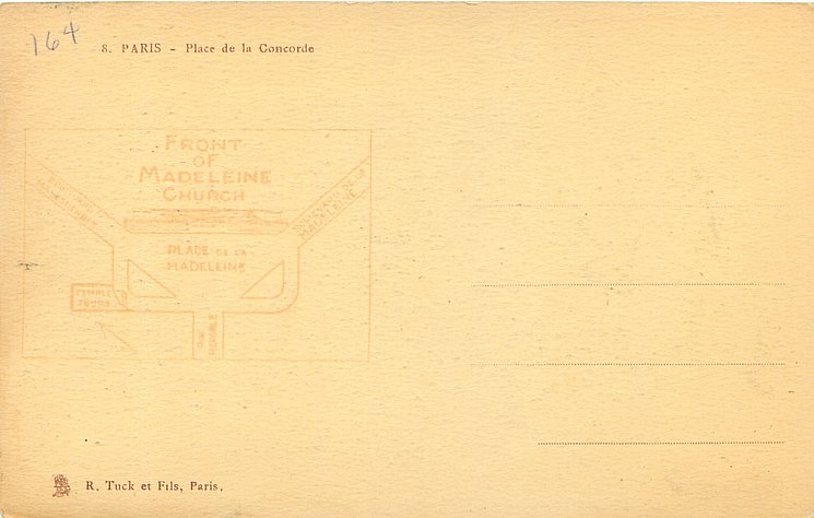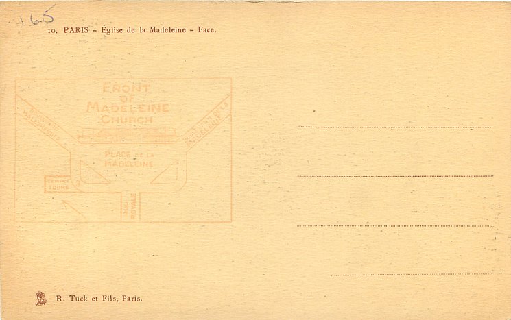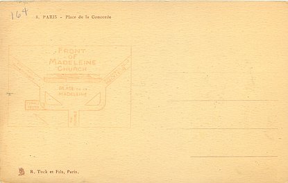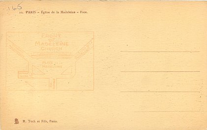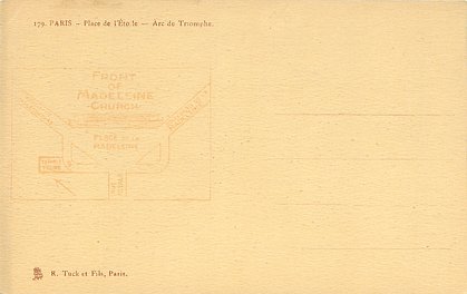 sepia, from photographs, similar to SIBYL sets but no attribution, map showing area FRONT OF MADELEINE CHURCH on back