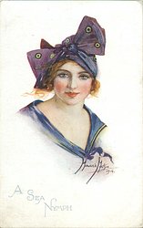 A PEARL OF THE OCEAN girl in orange bathing costume & hat
