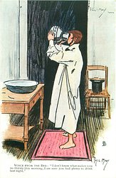 VOICE FROM THE BED: "I DON'T KNOW WHAT MAKES YOU SO THIRSTY THIS MORNING, I AM SURE YOU HAD PLENTY TO DRINK LAST NIGHT."