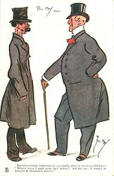 DISTINGUISHED INDIVIDUAL (TO SHABBY DITTO IN SHOCKING BAD HAT): "WHERE HAVE I SEEN YOUR FACE BEFORE? LET ME SEE-IT WASN'T AT LINCOLN & BENNETT'S, WAS IT?"
