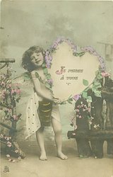 photographic, hand-coloured studies of young girl posed as angel, greeting messages in hearts