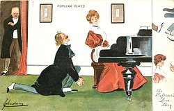 THE PROFESSOR'S LOVE STORY man on his knees impl;oring pretty girl at piano, father disapproves from doorway