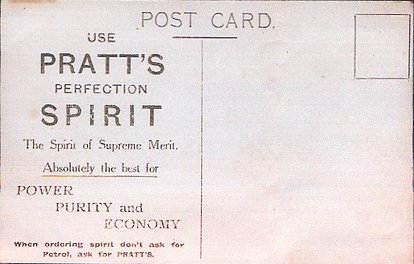 OILETTE & Tuck logo on front, unusual back, USE PRATTS PERFECTION SPIRIT THE SPIRIT OF SUPREME MERIT ABSOLUTELY THE BEST FOR POWER PURITY AND ECONOMY WHEN ORDERING SPIRIT DON'T ASK FOR PETROL ASK FOR PRATTS