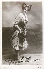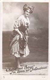 comes with I'M DOWN AT LOWESTOFT written on card or printed I'M DOWN AT CLACTON or SANDGATE or CHASE ME BOYS! I'M DOWN AT FELIXSTOWE.