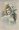 head and shoulders study of pretty woman, wearing head-dress of lace & flowers secured with large bow at neck, looks ahead