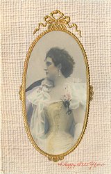 pretty ladies, DE LUXE, gilt art nouveau surrounds for photographic oval insets in faux woven buff surrounds