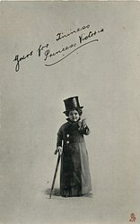facsimile YOURS FOR TININESS PRINCESS VICTORIA across top of card, she stands alone facing & looking front