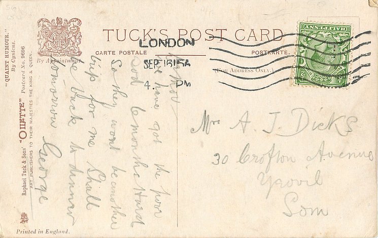 OILETTE, PRINTED IN ENGLAND, listed in 1914 Postcard Catalogue