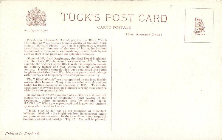 RED HACKLE SCOTCH WHISKY, PROPRIETORS HEPBURN & ROSS, GLASGOW