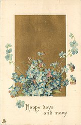 HAPPY DAYS AND MANY blue forget-me-nots on gold background