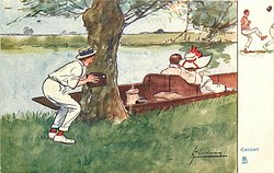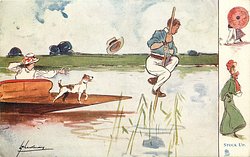 STUCK UP young man stuck on punt pole as the punt & his girl drift away