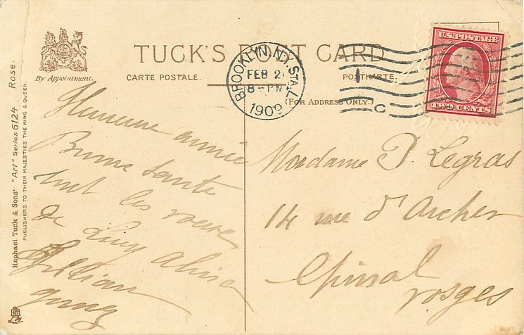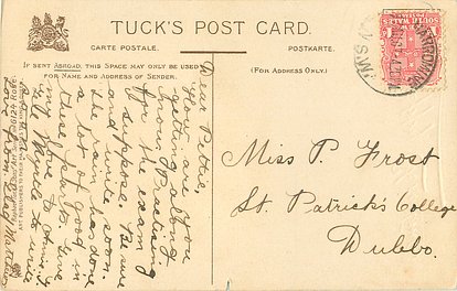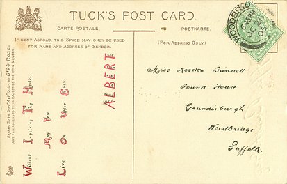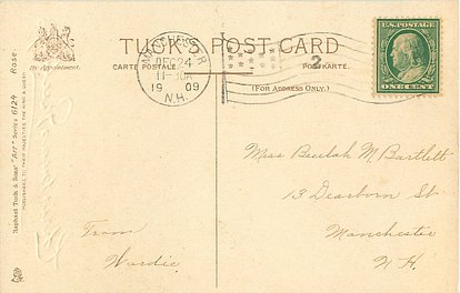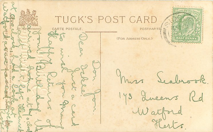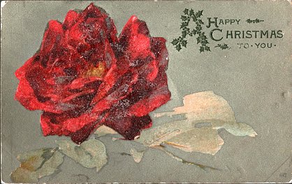 comes embossed CHRISTMAS GREETINGS or printed in green (beaded), glittered BRIDGEWATER 1906