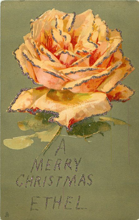 comes embossed BIRTHDAY GREETINGS or glittered A MERRY CHRISTMAS ETHEL, or MANY HAPPY RETURNS OF THE DAY