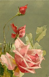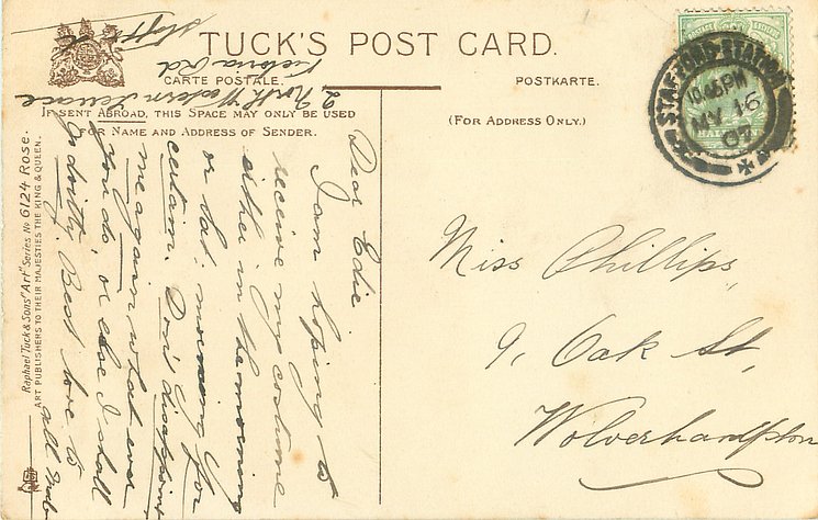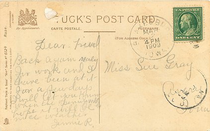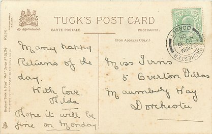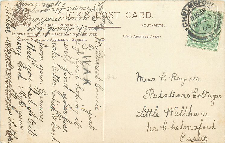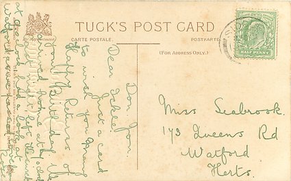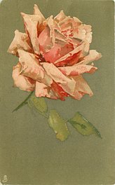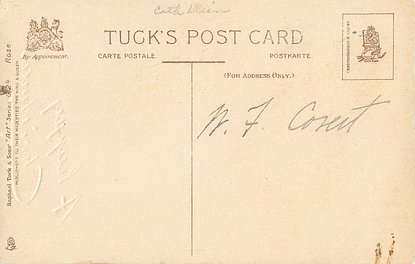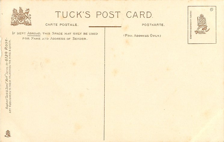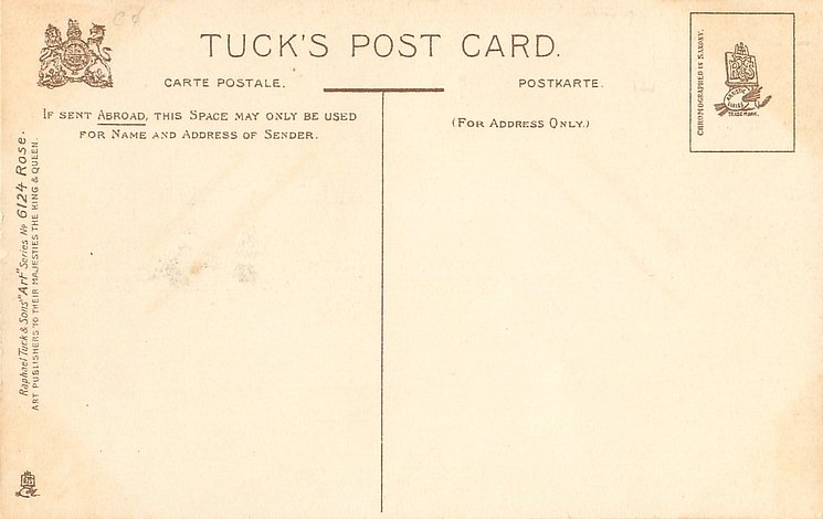 ART, CHROMOGRAPHED IN SAXONY (in or out of stamp box), deep green background, listed in 1911/1912 Postcard Catalogue