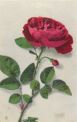 three roses, upper pink with yellow edges, lower red, left pink not quite open