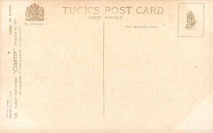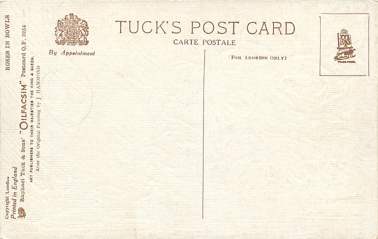 OILETTE, PRINTED IN ENGLAND, COPYRIGHT LONDON, come O/F not so trade named, come OILFACSIM with O/F prefixes, same images with birthday opts.1869, listed in 1930 Postcard Catalogue