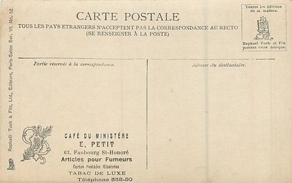 comes CAFE DU MINISTERE E. PETIT ...ARTICLES POUR FUMEURS advert on back