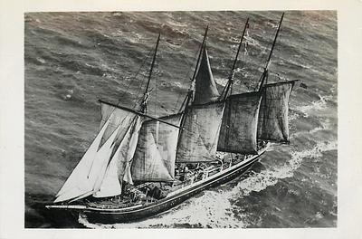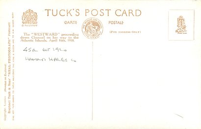 back information - SCHOONER "WESTWARD" - 2,000 TONS - LARGEST SAILING YACHT IN THE WORLD, OWNED BY H.K. HALES. OFF THE ISLE OF WIGHT ON HER VOYAGE TO THE ATLANTIC ISLANDS, APRIL 16TH, 1938. back information