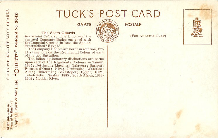 OILETTE, come in packet marked OILFACSIM but cards not so trade-named, PRINTED IN ENGLAND, COPYRIGHT LONDON, listed in 1911/1912 Postcard Catalogue