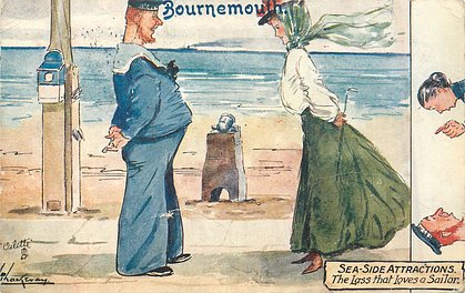 same image & card title 8553 GLOSSO OILETTE, AT THE SEASIDE, comes opt. in blue BOURNEMOUTH