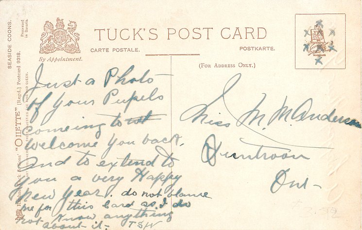 OILETTE, PROCESSED IN BAVARIA (in or out of stamp box), listed in 1908/1909 & 1911/1912 Postcard Catalogue, same images OILETTE 9968