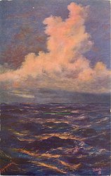 IM INDISCHEN OZEAN purple/red seascape, mass of pale clouds
