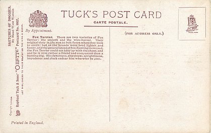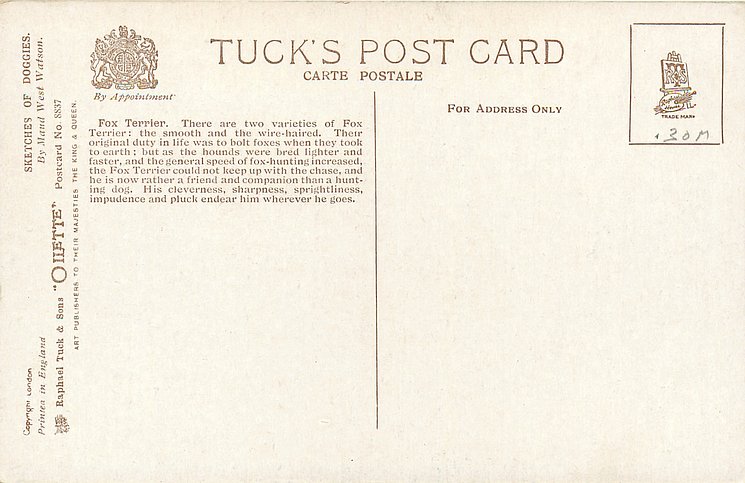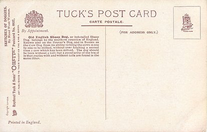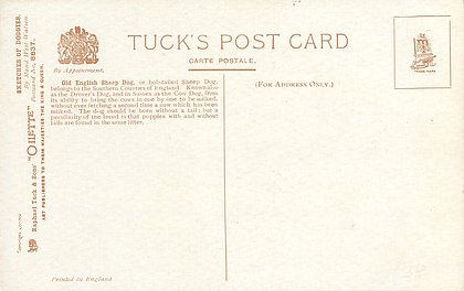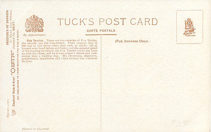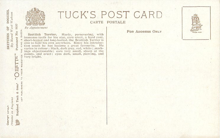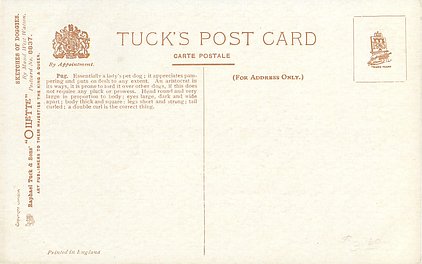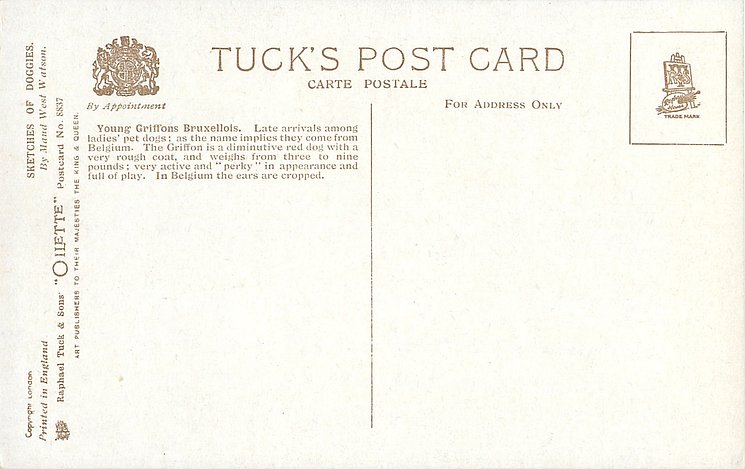 OILETTE, PRINTED IN ENGLAND, COPYRIGHT LONDON, come o/f (but not so trade named), 3 backs, listed in 1926/1927 Postcard Catalogue,