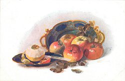 melon in glass boiwl, large slice cut & on plate, raspberries around