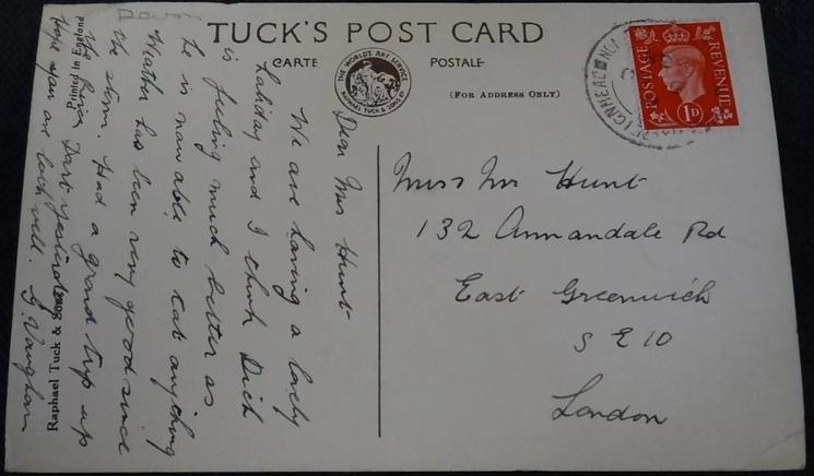 sepia, come hand-coloured, PRINTED IN ENGLAND on pkt.SIX SEPIA MATT VIEWS, C.A. RIGGS, THE GARAGE POST OFFICE STOKE IN TEIGNHEAD NEWTON ABBOT plus Tuck information