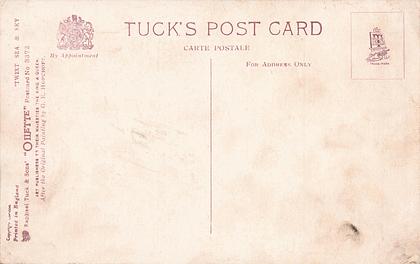 OILETTE, PRINTED IN ENGLAND, COPYRIGHT LONDON, come O/F but not so trade named, AFTER THE ORIGINAL PAINTING BY G.E. HOPCROFT. comes with w/out verse - often difficult to read.
