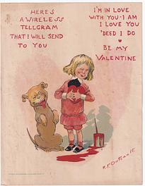CHROMOGRAPHED IN BAVARIA, Outcault sketches on back with or w/o comment, the same basic Outcault images occur in all his Valentine sets