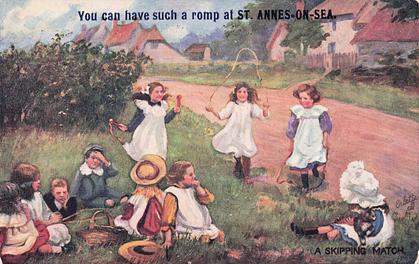 comes opt. in red MANY HAPPY RETURNS OF THE DAY. comes opt. in black YOU CAN HAVE SUCH A ROMP AT ST. ANNES-ON-SEA