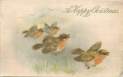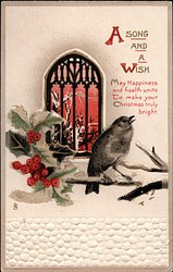 "CHRISTMAS" SERIES unnumbered, birds & holly before lighted window
