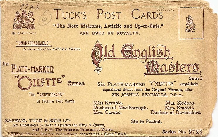 OILETTE, PLATE-MARKED, PRINTED IN ENGLAND, listed as FAMOUS BEAUTIES in 1908/1909 & 1911/1912 & as OLD MASTERS in 1930 POSTCARD Catalogues