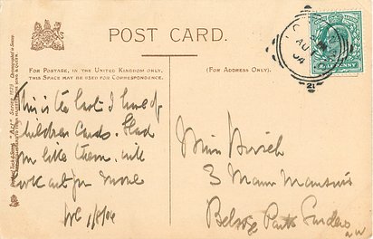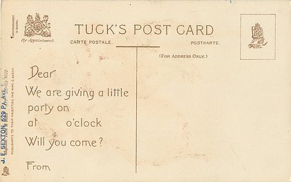 ART, 2 backs, CHROMOGRAPHED IN SAXONY, listed in 1908/1909 & 1911/1912 Postcard Catalogue, come used for party invitations